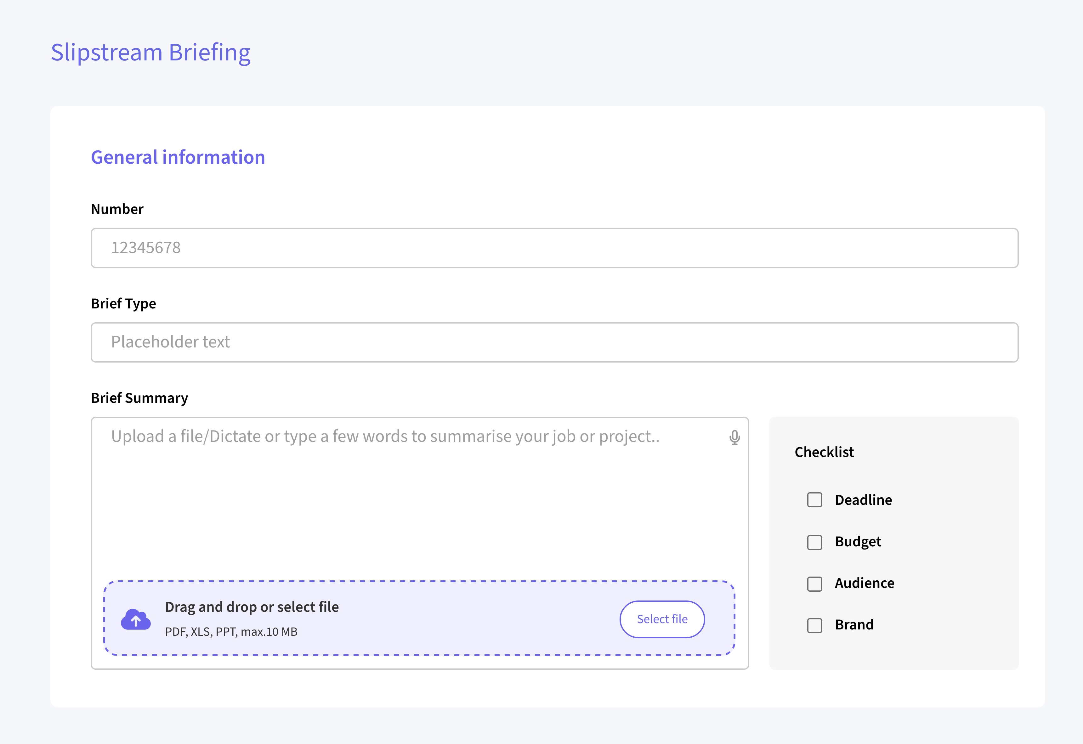 We have introduced a new feature that allows users to upload a PDF document directly into the Brief Summary section of a Slipstream brief. OMG then processes the file, extracts the content, and organizes the briefing form as if the information were typed or pasted manually. Images within the PDF are also analyzed during this process, and the form can be configured to provide additional context, streamlining brief creation like never before.