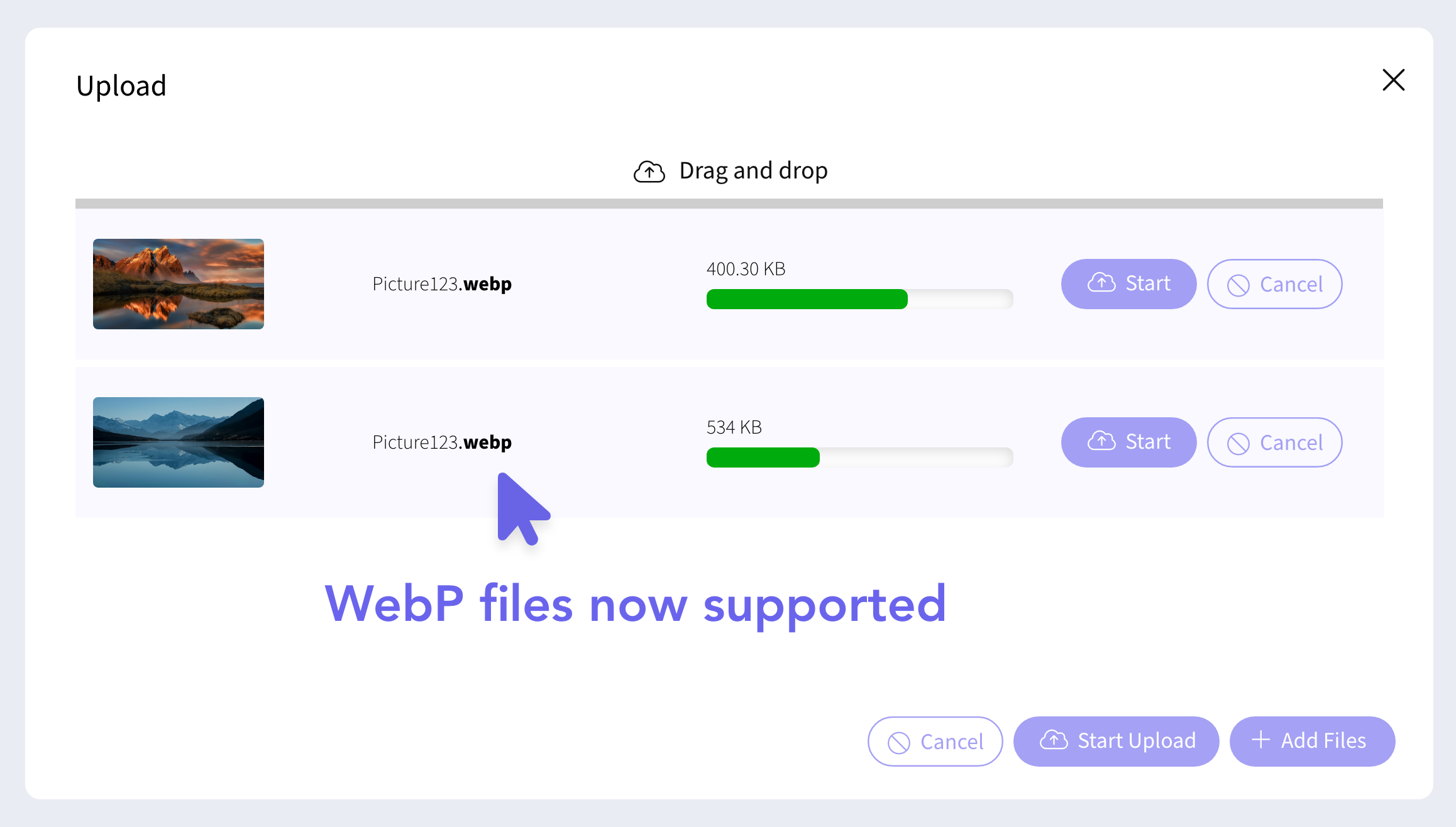 You can now upload and view WebP images anywhere you upload images in OMG, except Slipstream. WebP files are lighter and faster, helping improve performance across the platform. They’re also fully supported in Review Studio and can be sent for approvals like other image formats.