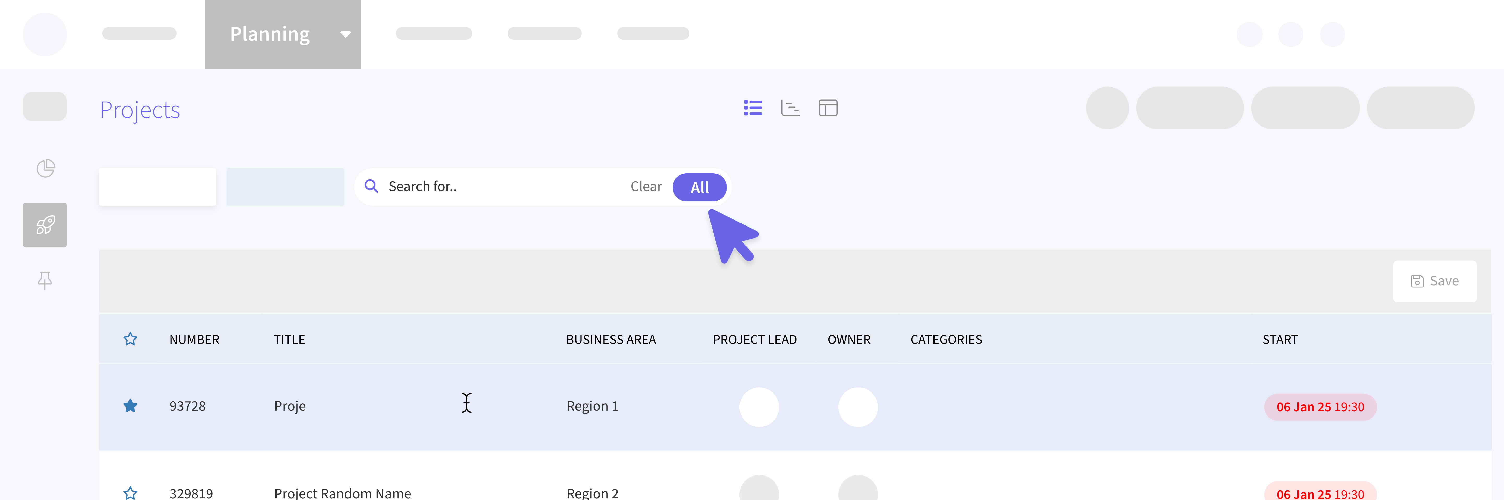 We’ve added a new All toggle at the top of the Planning grid. When turned on, your search will include projects from all statuses.. similar to the legacy ✅ Include all projects checkbox in the left navigation. When you perform a search with the All toggle enabled, the Active and Completed tabs will automatically deselect to avoid confusion, since the results may include projects from multiple statuses.