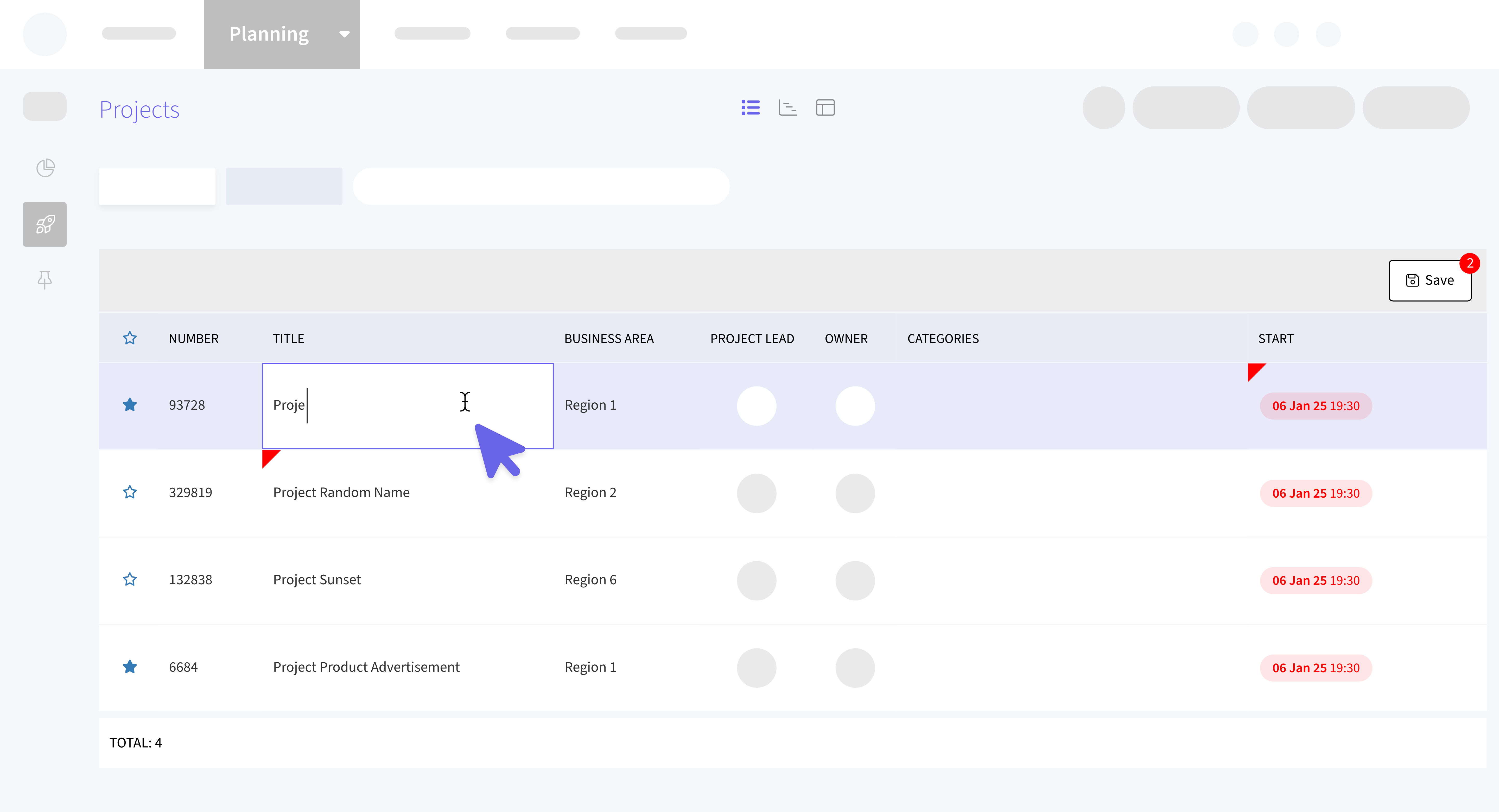 You can now double-click to edit the Title, Business Area, Start Date, End Date, and Project Lead directly in the list view.