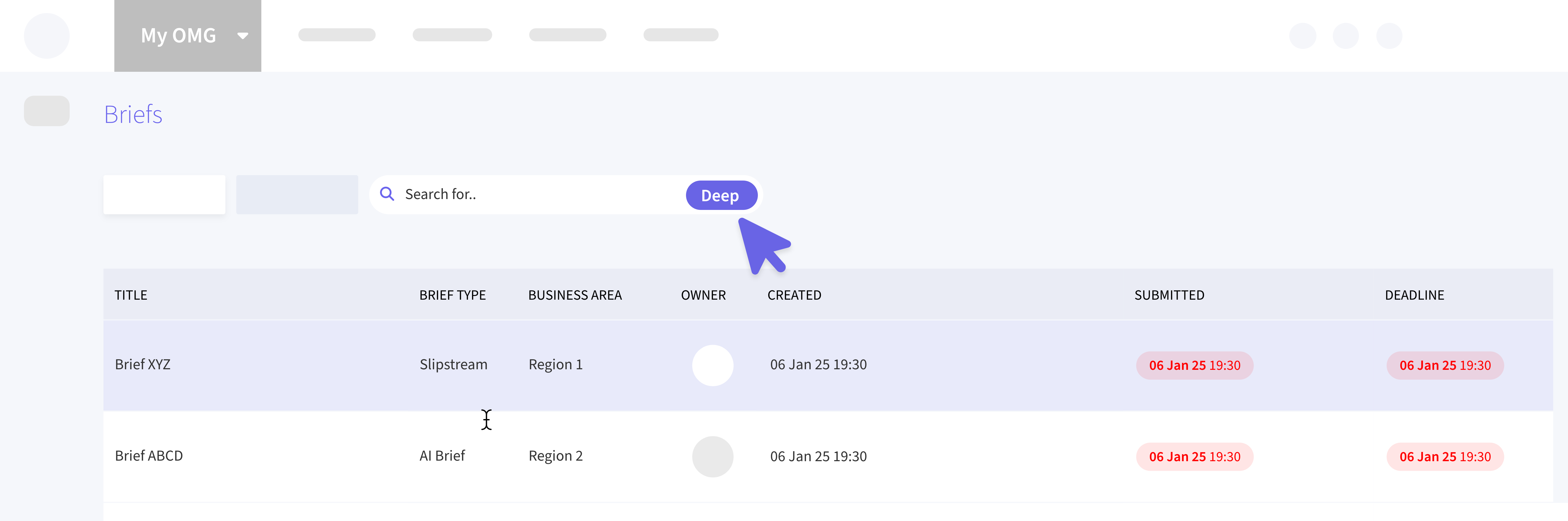 Similar to briefs, a "deep" option is added in the deliverables search function for more comprehensive result sets.